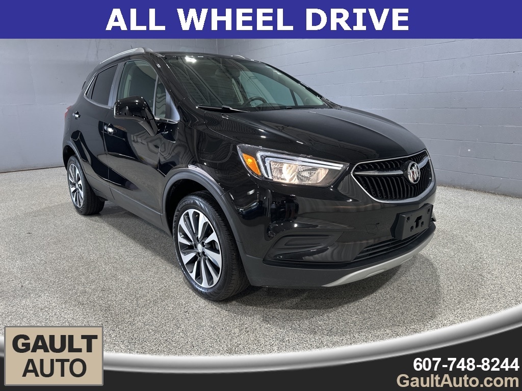 One Owner, Clean CarFax Report, Encore Preferred, 4D Sport Utility, 1.4L ECOTEC Turbo VVT DOHC 4-Cyl SIDI, 6-Speed Automatic Electronic with Overdrive, AWD, Ebony Twilight Metallic, Ebony Cloth, 120-Volt Power Outlet, 18" Aluminum Wheels, 2-Way Manual Front Passenger Seat Adjuster, 3 Years of OnStar & Connected Services Plan (DISC), 3.53 Final Drive Axle Ratio, 4-Wheel Disc Brakes, 6 Speakers, 6-Speaker Audio System, 6-Way Power Driver Seat Adjuster, ABS brakes, Air Conditioning, Alloy wheels, AM/FM radio: SiriusXM, Apple CarPlay/Android Auto, Brake assist, Bumpers: body-color, Cloth w/Leatherette Seat Trim, Compass, Delay-off headlights, Driver door bin, Driver vanity mirror, Driver's Seat Mounted Armrest, Dual front impact airbags, Dual front side impact airbags, Electronic Stability Control, Emergency communication system: OnStar and Buick connected services capable, Exterior Parking Camera Rear, Front anti-roll bar, Front Bucket Seats, Front License Plate Bracket, Front reading lights, Front wheel independent suspension, Fully automatic headlights, Heated door mirrors, Illuminated entry, Knee airbag, Leather steering wheel, Low tire pressure warning, Occupant sensing airbag, Outside temperature display, Overhead airbag, Panic alarm, Passenger door bin, Passenger vanity mirror, Power door mirrors, Power driver seat, Power steering, Power windows, Preferred Equipment Group 1SB, Radio data system, Radio: 7" Diagonal Buick Infotainment System, Rear Cross Traffic Alert, Rear seat center armrest, Rear side impact airbag, Rear window defroster, Rear window wiper, Remote keyless entry, Ride & Handling Suspension, Roof rack: rails only, Safety Package, Security system, Side Blind Zone Alert, SiriusXM Radio, Speed control, Speed-sensing steering, Split folding rear seat, Spoiler, Steering wheel mounted audio controls, Tachometer, Telescoping steering wheel, Tilt steering wheel, Traction control, Trip computer, Variably intermittent wipers, Encore Preferred, 4D Sport Utility, 1.4L ECOTEC Turbo VVT DOHC 4-Cyl SIDI, 6-Speed Automatic Electronic with Overdrive, AWD, Ebony Twilight Metallic, Ebony Cloth.