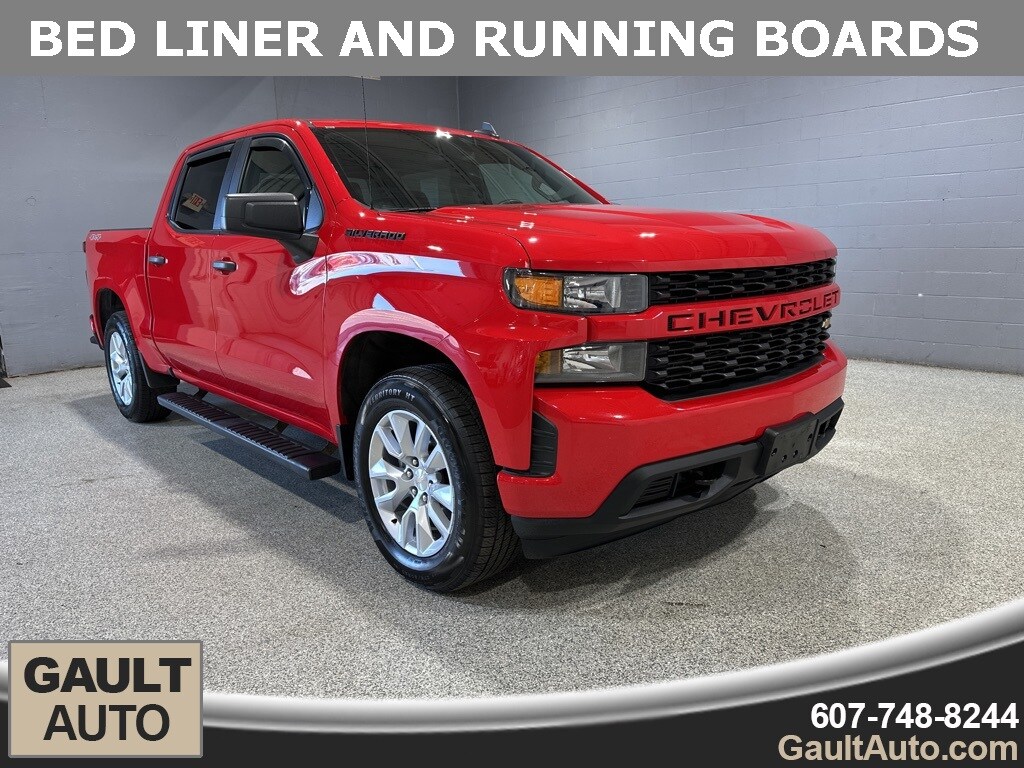 One Owner, Clean CarFax Report, Silverado 1500 LTD Custom, 4D Crew Cab, 2.7L Turbo, 8-Speed Automatic, 4WD, Red Hot, Black Cloth, 3.42 Rear Axle Ratio, 3.5" Monochromatic Display Driver Info Center, 4-Wheel Disc Brakes, 40/20/40 Front Split Bench Seat, 6 Speakers, 6-Speaker Audio System, ABS brakes, Air Conditioning, Alloy wheels, AM/FM radio: SiriusXM, Apple CarPlay/Android Auto, Bluetooth® For Phone, Body Color Grille, Brake assist, Bumpers: body-color, Chevrolet Connected Access Capable, Chevytec Spray-On Black Bedliner, Cloth Seat Trim, Color-Keyed Carpeting Floor Covering, Compass, Custom Convenience Package, Custom Value Package, Deep-Tinted Glass, Delay-off headlights, Driver door bin, Driver vanity mirror, Dual front impact airbags, Dual front side impact airbags, Electric Rear-Window Defogger, Electronic Cruise Control, Electronic Stability Control, EZ Lift Power Lock & Release Tailgate, Front anti-roll bar, Front Center Armrest w/Storage, Front Frame-Mounted Black Recovery Hooks, Front License Plate Kit, Front reading lights, Front Rubberized Vinyl Floor Mats, Front wheel independent suspension, Fully automatic headlights, Heated door mirrors, Heavy Duty Suspension, Hitch Guidance, Illuminated entry, Infotainment Package, LED Cargo Area Lighting, Low tire pressure warning, Manual Tilt Wheel Steering Column, Occupant sensing airbag, OnStar & Chevrolet Connected Services Capable, Outside temperature display, Overhead airbag, Overhead console, Panic alarm, Passenger door bin, Passenger vanity mirror, Power Door Locks, Power door mirrors, Power Front Windows w/Driver Express Up/Down, Power Front Windows w/Passenger Express Down, Power Rear Windows w/Express Down, Power steering, Power windows, Preferred Equipment Group 1CX, Premium audio system: Chevrolet Infotainment 3, Radio data system, Radio: Chevrolet Infotainment 3 System, Rear 60/40 Folding Bench Seat (Folds Up), Rear reading lights, Rear Rubberized-Vinyl Floor Mats, Rear step bumper, Rear window defroster, Remote Keyless Entry, Remote keyless entry, Remote Vehicle Starter System, Security system, SiriusXM Radio, Speed control, Speed-sensing steering, Split folding rear seat, Standard Tailgate, Tachometer, Theft Deterrent System (Unauthorized Entry), Tilt steering wheel, Traction control, Trailering Package, Trip computer, Variably intermittent wipers, Voltmeter, Wheels: 20" x 9" Bright Silver Painted Aluminum, Wi-Fi Hot Spot Capable, Silverado 1500 LTD Custom, 4D Crew Cab, 2.7L Turbo, 8-Speed Automatic, 4WD, Red Hot, Black Cloth.