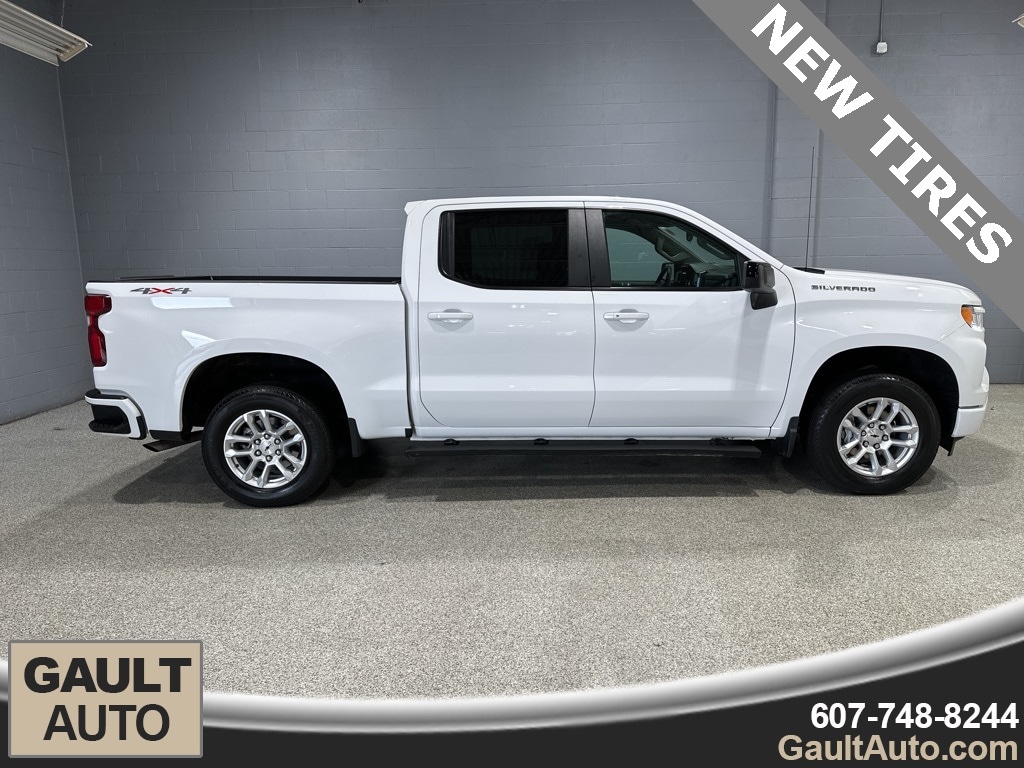 One Owner, Clean CarFax Report, Silverado 1500 RST, 4D Crew Cab, EcoTec3 5.3L V8, 10-Speed Automatic, 4WD, Summit White, Black Cloth, 10-Way Power Driver Seat w/Lumbar, 12.3" Multicolor Reconfigurable Digital Display, 120-Volt Bed Mounted Power Outlet, 120-Volt Interior Power Outlet, 170 Amp Alternator, 220 Amp Alternator, 3.23 Rear Axle Ratio, 4-Wheel Disc Brakes, 40/20/40 Front Split-Bench Seat, 6 Speakers, 6-Speaker Audio System, ABS brakes, Air Conditioning, All-Star Edition, Alloy wheels, AM/FM radio: SiriusXM with 360L, Auto High-beam Headlights, Auto-Locking Rear Differential, Automatic Emergency Braking, Automatic temperature control, Auxiliary External Transmission Oil Cooler, Bluetooth® For Phone, Brake assist, Bumpers: body-color, Chevrolet Connected Access Capable, Chevytec Spray-On Black Bedliner, Cloth Seat Trim, Color-Keyed Carpeting Floor Covering, Compass, Convenience Package, Deep-Tinted Glass, Delay-off headlights, Driver door bin, Driver vanity mirror, Dual front impact airbags, Dual front side impact airbags, Dual Rear USB Ports (Charge Only), Dual-Zone Automatic Climate Control, Electric Rear-Window Defogger, Electrical Steering Column Lock, Electronic Cruise Control, Electronic Stability Control, External Engine Oil Cooler, EZ Lift Power Lock & Release Tailgate, Floor Liners w/Front Removable Carpet Inserts, Floor Liners w/Rear Removable Carpet Inserts, Following Distance Indicator, Forward Collision Alert, Front anti-roll bar, Front Center Armrest w/Storage, Front dual zone A/C, Front fog lights, Front Frame-Mounted Black Recovery Hooks, Front LED Fog Lamps, Front License Plate Kit, Front Pedestrian Braking, Front reading lights, Front Rubberized Vinyl Floor Mats, Front wheel independent suspension, Fully automatic headlights, HD Rear Vision Camera, Heated door mirrors, Heated Driver & Front Outboard Passenger Seats, Heated front seats, Heated Power-Adjustable Outside Mirrors, Heated Steering Wheel, Heated steering wheel, High Gloss Black Mirror Caps, Hitch Guidance, Illuminated entry, Inside Rear-View Mirror w/Tilt, Integrated Trailer Brake Controller, IntelliBeam Automatic High Beam On/Off, Keyless Open & Start, Lane Keep Assist w/Lane Departure Warning, LED Cargo Area Lighting, Low tire pressure warning, Occupant sensing airbag, OnStar & Chevrolet Connected Services Capable, Outside temperature display, Overhead airbag, Overhead console, Panic alarm, Passenger door bin, Passenger vanity mirror, Power door mirrors, Power driver seat, Power Front Windows w/Driver Express Up/Down, Power Front Windows w/Passenger Express Down, Power Rear Windows w/Express Down, Power steering, Power windows, Preferred Equipment Group 1SP, Premium audio system: Chevrolet Infotainment 3 Premium, Protection Package, Radio data system, Radio: Chevrolet Infotainment 3 Premium System, Rear 60/40 Folding Bench Seat (Folds Up), Rear reading lights, Rear Rubberized-Vinyl Floor Mats, Rear step bumper, Rear Wheelhouse Liners, Rear window defroster, Remote keyless entry, Remote Vehicle Starter System, Security system, Single Outlet Exhaust, SiriusXM w/360L, Speed control, Speed-sensing steering, Split folding rear seat, Standard Suspension Package, Standard Tailgate, Steering Wheel Audio Controls, Steering wheel mounted audio controls, Tachometer, Telescoping steering wheel, Theft Deterrent System (Unauthorized Entry), Tilt steering wheel, Traction control, Trailering Package, Trip computer, Variably intermittent wipers, Voltmeter, Wheels: 18" x 8.5" Bright Silver Painted Aluminum, Wi-Fi Hot Spot Capable, Wrapped Steering Wheel, Silverado 1500 RST, 4D Crew Cab, EcoTec3 5.3L V8, 10-Speed Automatic, 4WD, Summit White, Black Cloth.
