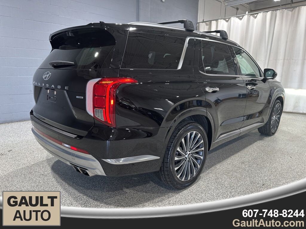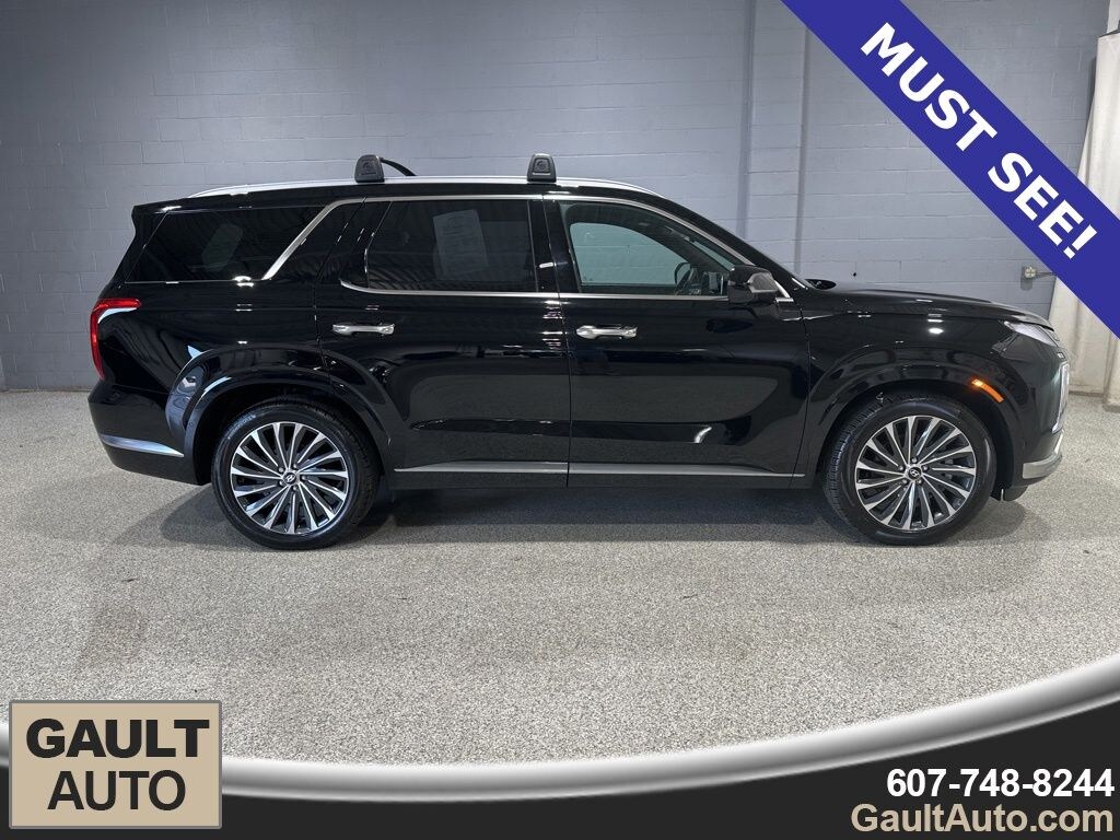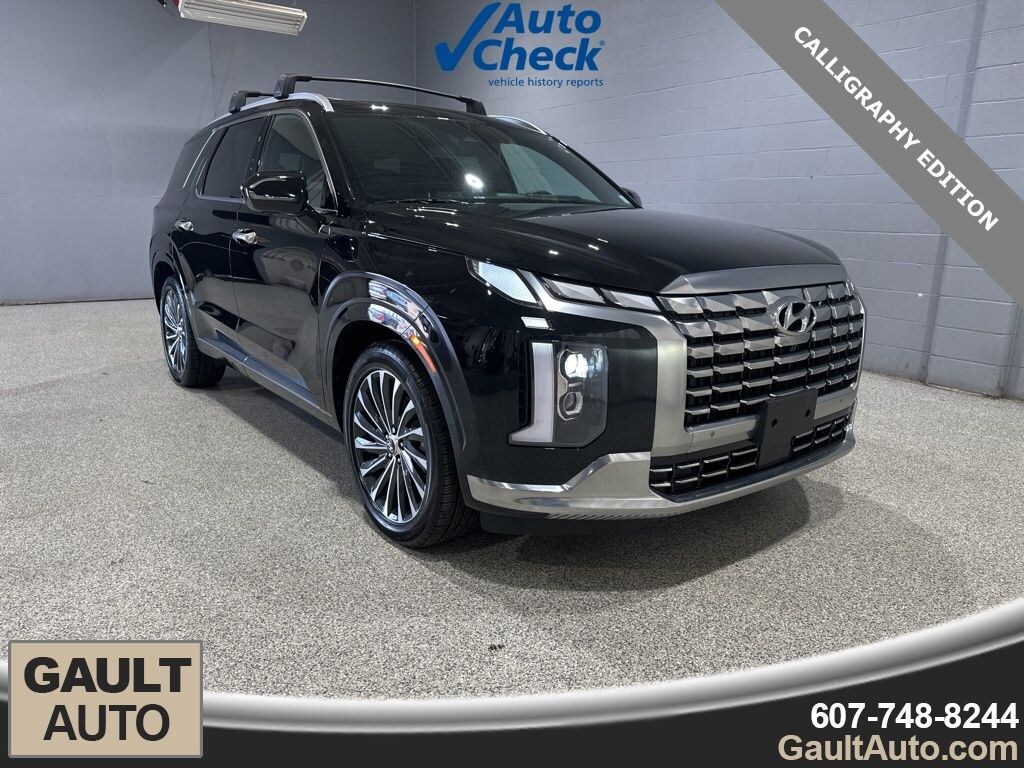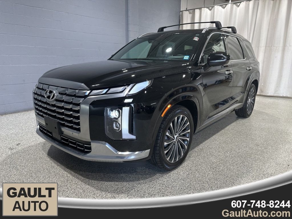 One Owner, Clean CarFax Report, Palisade Calligraphy, 4D Sport Utility, V6, 8-Speed Automatic with SHIFTRONIC, AWD, Abyss Black Pearl, Black Leather, 12 Speakers, 3.648 Axle Ratio, 3rd row seats: split-bench, 4-Wheel Disc Brakes, ABS brakes, Air Conditioning, Alloy wheels, AM/FM radio: SiriusXM, Apple CarPlay & Android Auto, Auto High-beam Headlights, Auto-dimming door mirrors, Auto-dimming Rear-View mirror, Auto-leveling suspension, Automatic temperature control, Brake assist, Bumpers: body-color, Cargo Blocks, Cargo Cover/Screen, Cargo Net, Cargo Package, Cargo Tray, Carpeted Floor Mats, Compass, Delay-off headlights, Driver door bin, Driver vanity mirror, Dual front impact airbags, Dual front side impact airbags, Electronic Stability Control, Emergency communication system: Blue Link Connected Car Service (3-year complimentary subscription), Exterior Parking Camera Rear, Four wheel independent suspension, Front anti-roll bar, Front Bucket Seats, Front Center Armrest, Front dual zone A/C, Front reading lights, Fully automatic headlights, Garage door transmitter: HomeLink, harman/kardon® Speakers, Heads-Up Display, Heated & Ventilated Front Bucket Seats, Heated door mirrors, Heated front seats, Heated rear seats, Heated steering wheel, Illuminated entry, Knee airbag, Low tire pressure warning, Memory seat, Navigation System, Occupant sensing airbag, Option Group 01, Outside temperature display, Overhead airbag, Overhead console, Panic alarm, Passenger door bin, Passenger vanity mirror, Power door mirrors, Power driver seat, Power Liftgate, Power moonroof, Power passenger seat, Power steering, Power windows, Premium Nappa Leather Seat Trim, Radio data system, Radio: AM/FM/MP3 Premium Audio System, Rain sensing wipers, Rear air conditioning, Rear anti-roll bar, Rear audio controls, Rear Bumper Applique, Rear reading lights, Rear side impact airbag, Rear window defroster, Rear window wiper, Reclining 3rd row seat, Remote keyless entry, Security system, Speed control, Speed-sensing steering, Split folding rear seat, Spoiler, Steering wheel mounted audio controls, Tachometer, Telescoping steering wheel, Tilt steering wheel, Traction control, Trip computer, Turn signal indicator mirrors, Variably intermittent wipers, Ventilated front seats, Ventilated rear seats, Wheel Locks, Wheels: 20" x 7.5J Calligraphy Exclusive Alloy, Palisade Calligraphy, 4D Sport Utility, V6, 8-Speed Automatic with SHIFTRONIC, AWD, Abyss Black Pearl, Black Leather.