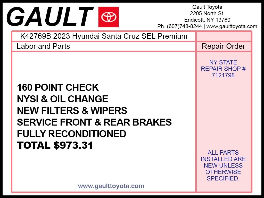 Explore the 2023 Hyundai Santa Cruz SEL Premium at Gault Toyota in Endicott, NY. This unique sport adventure vehicle combines the comfort of an SUV with the utility of a pickup, featuring a powerful turbocharged engine, HTRAC all-wheel drive, and advanced technology. Inside, youll find premium features like leather-trimmed seating, a large touchscreen display, and driver-assist safety systems. Visit Gault Toyota in Endicott today to see why the 2023 Santa Cruz SEL Premium is the perfect blend of versatility and style.