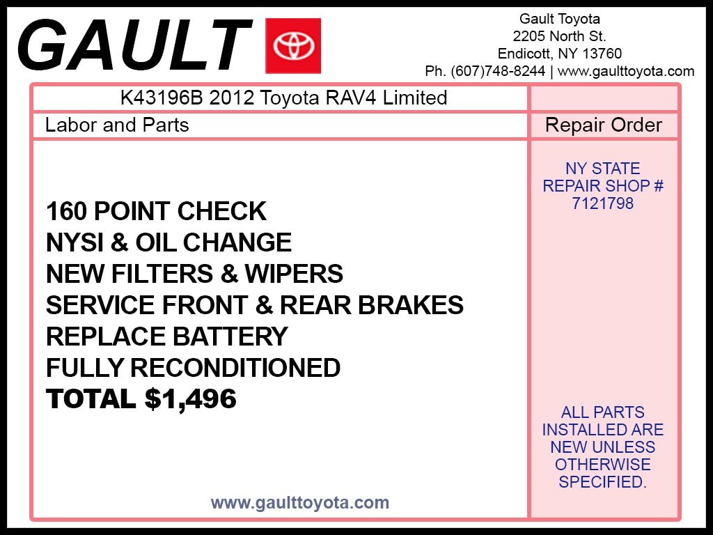 We are Binghamton's Used Car Specialists. Gault Toyota can be found online at www.GaultToyota.com or you can call us at 866-490-9238. Gault Toyota proudly serving Broome County, Tioga County, Binghamton, Endicott, Vestal, Ithaca, Cortland, Syracuse, Corning, Elmira, NY and Montrose, Scranton, PA. We have one of the largest pre owned and certified inventory's in New York. Please email, call or stop by with any questions you have about or used car inventory.