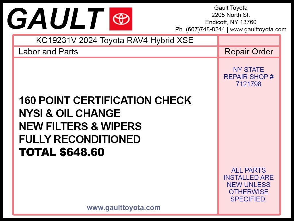 Experience the 2024 Toyota RAV4 Hybrid XSE at Gault Toyota in Endicott, NY where sporty style meets hybrid efficiency. The RAV4 Hybrid XSE stands out with its sleek black accents, bold design, and impressive fuel economy, making it perfect for both city commutes and weekend adventures. Inside, enjoy premium comfort, advanced technology, and Toyota Safety Sense features for peace of mind. Visit Gault Toyota in Endicott today to test drive the 2024 Toyota RAV4 Hybrid XSE and elevate your drive.